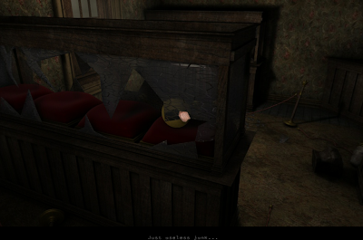 The gameplay of Scratches takes second stage to the story and atmosphere. All of the puzzles are obvious extensions of the storyline and are incorporated because of the story. This makes for very logical and simple puzzles; most of which are inventory based. The game does not really even use any inventory combination puzzles, with the few times that you do combine items in the inventory being so obvious that I would not consider them puzzles. Unfortunately, the game does get off on a rather bad start where the puzzles are concerned; The very first challenge you have is trying to figure out where to put your suitcase, with absolutely no direction. It does not go on the bed, it does not go on the desk, there are no interactable areas on the ground. Eventually, I figured out where to put it, but I could not help thinking that in no sense should this puzzle exist. Another feature of the game worth mentioning is how much the inventory builds up overs time; Most items are not used more than once, but unless using an item logically destroys or leaves it then it is kept in the inventory long past its last use. On the one hand this seemed unnecessary, but on the other it did not ever cause me any problems because the puzzles are always so logical. You never have to try all your items on this one elusive challenge, if you see a problem you pretty much know what you need to solve it, and either have to look for the item or simply take it out of your inventory. Even the keys had pretty obvious doors to which they belonged, and just by looking at their icons and you could tell which door they would unlock. One thing that Scratches does well is mixing a linear storyline with non-linear gameplay. Yes, the game is linear, but at the same time you have multiple avenues to explore, almost all of the time; There is enough give that I was never stuck behind this one tiny roadblock that needed to be cleared before the story could progress.